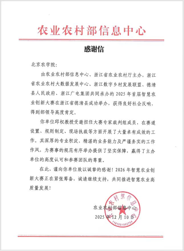 作为首批入选北京市教委人工智能典型应用场景培育名单的项目,“数字京村”平台以“三融三智”理念为引领,依托实际场景,打造了实践导向、学生中心的复合型应用型人才培养体系,有效解决了教学中存在学科壁垒、缺少实践资源、缺乏“三农”认知等问题。2025年11月28日,智能学院研究生党支部在支部书记李小顺和学院张娜教授的带领下,把《智慧农业技术案例》的课堂搬进了北京市房山区周口店镇黄山店村,为2025级农业工程与信息...