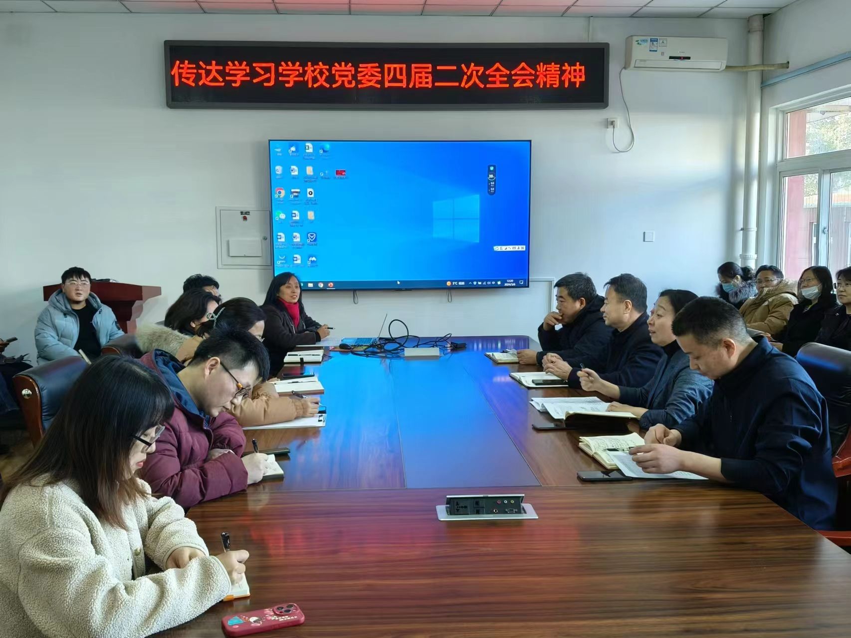 张晓凤传达了中国共产党44118太阳成城第四届委员会第二次全体会议精神,带领大家认真学习了党委书记赵锋代表党委常委会向全会作的报告。要求教职工明确学校2024年重点工作,结合学院实际狠抓各项工作的落实,以“工作落实年”为契机,以良好的精神风貌推动学院各项事业高质量发展。着重部署学院学科建设与研究生培养工作,强调教育教学审核评估、绩效工资改革、学生就业及安全稳定工作。