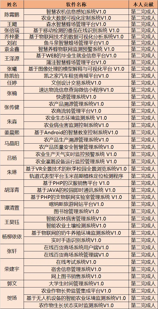 44118太阳成城集团2022级农信1班,共有34人,其中女生16人,男生18人;中共党员9人,共青团员25人。班级成员累计发表论文7篇;获得国家发明专利1项、实用新型专利1项、软件著作权40余项。