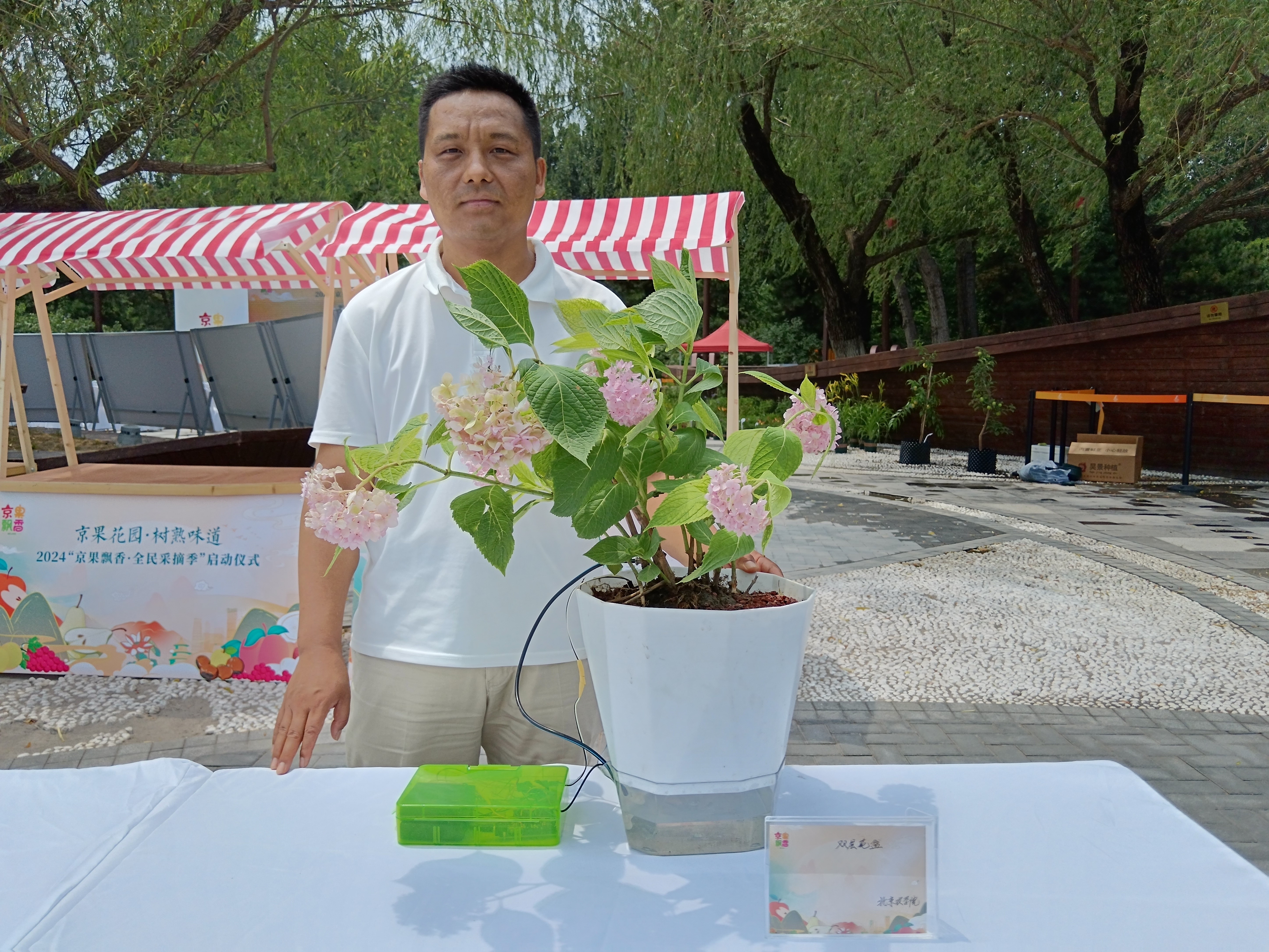 6月27日,2024“京果飘香·全民采摘季”在北京正式启动。44118太阳成城集团石恒华老师带队参加了在北京市通州区大运河森林公园举办的启动仪式,并展出了最新研发的“家庭园艺双层智能花盆”。