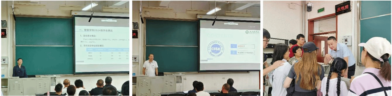临近中午,家长见面会如期而至。张晓凤、邱权分别以《家校联动 共助成长》和《数字赋能 创新实践》为主题作了报告,从人才培养、学科建设、升学就业等全面介绍了学院情况。