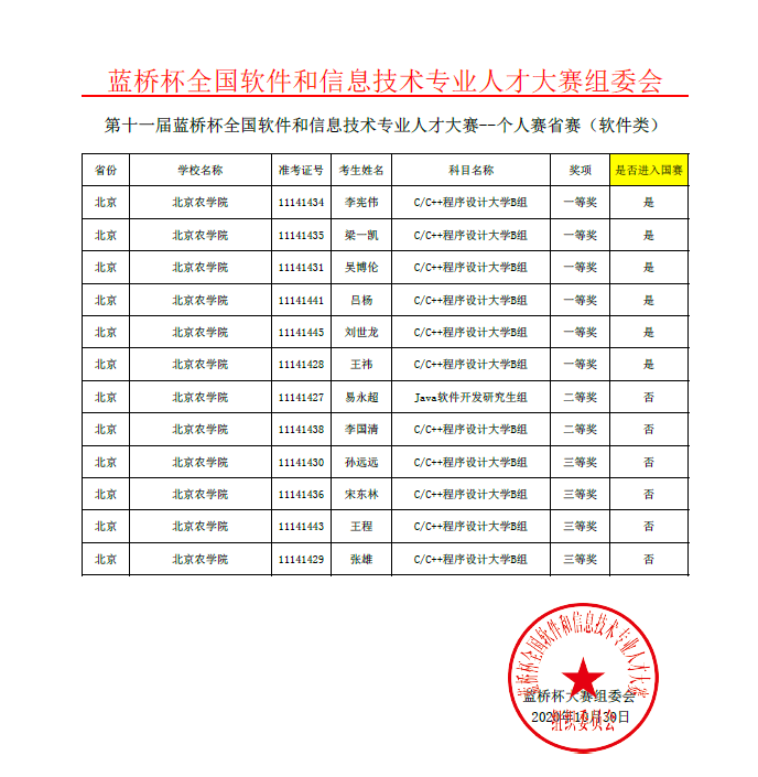10月17日,第十一届“蓝桥杯”全国软件和信息技术专业人才大赛在各赛点举行,计算机与信息工程学院共组织21名同学组队参加个人赛,最终取得6个一等奖,2个二等奖和5个三等奖的优异成绩。