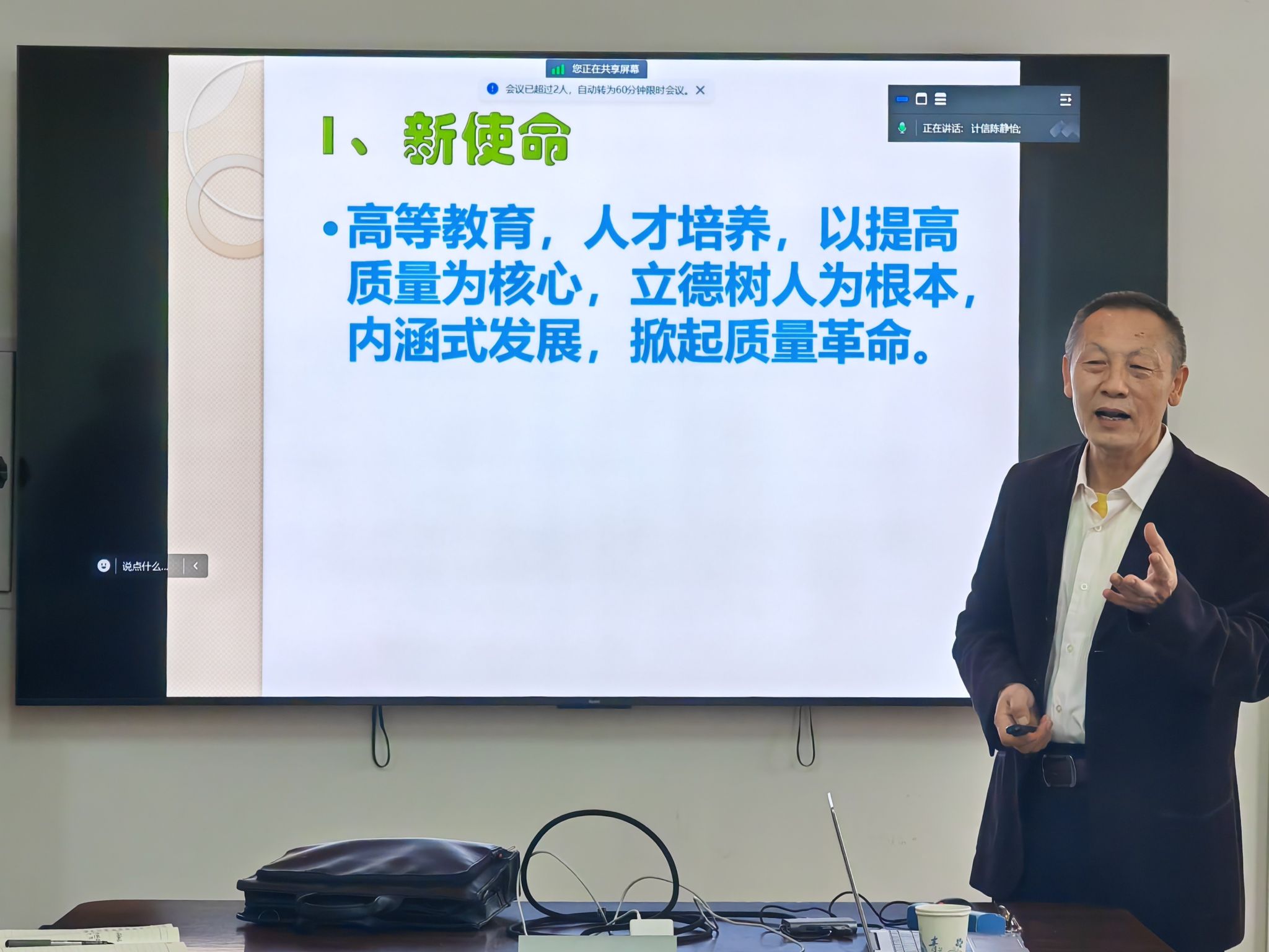学院盛情邀请,孙祎振教授倾情授课,为学院青年教学团队带来精彩专题讲座 2023年12月13日(本周三)上午10点,我院邀请到了学校督导组长孙祎振教授,为我们带来了一场精彩的专题讲座——“如何做好教学设计”。孙教授以其深厚的学术背景和丰富的教学经验,为在场师生带来了许多宝贵的建议和启示。 讲座在学院会议室内举行,吸引了众多教师参与。孙教授以生动活泼的方式,从教学设计的理念、方法、实践等方面进行了深入浅出的讲解。他强调了教学设计在提高教学质量、促进学生学习过程中的重要性,并分享了一些实用的教学技巧和策略。 孙教授指出,教学设计是教师教学工作的一个重要组成部分,它不仅关乎教学效果,更关乎学生的学习体验和成长。他建议教师们要以提高教学质量为核心,立德树人为根本,内涵式发展。同时,他强调了教师自身素质的提升,鼓励教师们不断学习、反思、创新,以适应教育发展的需要。 此次讲座是学院推动教育教学改革的重要举措之一,也是为学院的青年教师提高自身教学水平提供了一个平台和机会,我们将继续关注和支持教师们的专业发展,为学生提供更加优质的教育资源。我们相信,在大家的共同努力下,学院的教育教学工作将迈上新的台阶。