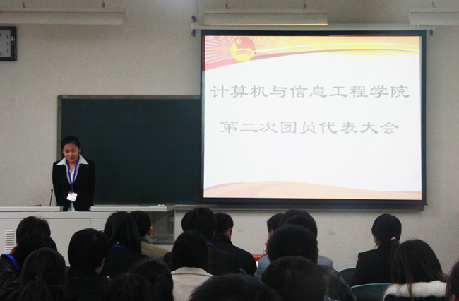 3月21日下午5时,计算机与信息工程学院第二次团员代表大会在教B106隆重召开。学院党总支书记闫晓军,党总支副书记张晓凤,校团委张思明出席大会。