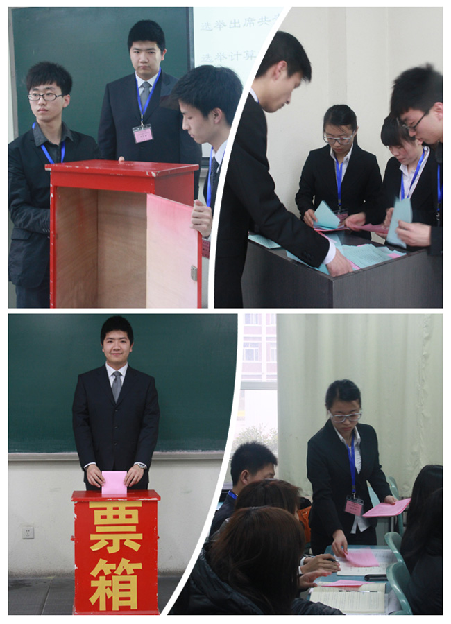 大会还审议并通过了大会选举办法、监票人和计票人名单。并由监票人孙宇辰同学主持选举。在公示票箱和选票后,监票人向全体代表介绍选票填写方法,并由工作人员为代表发放选票。37名代表依次上台,投出自己庄严的一票。