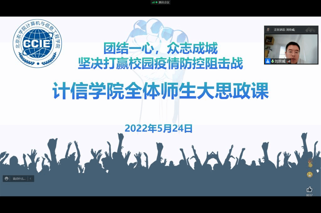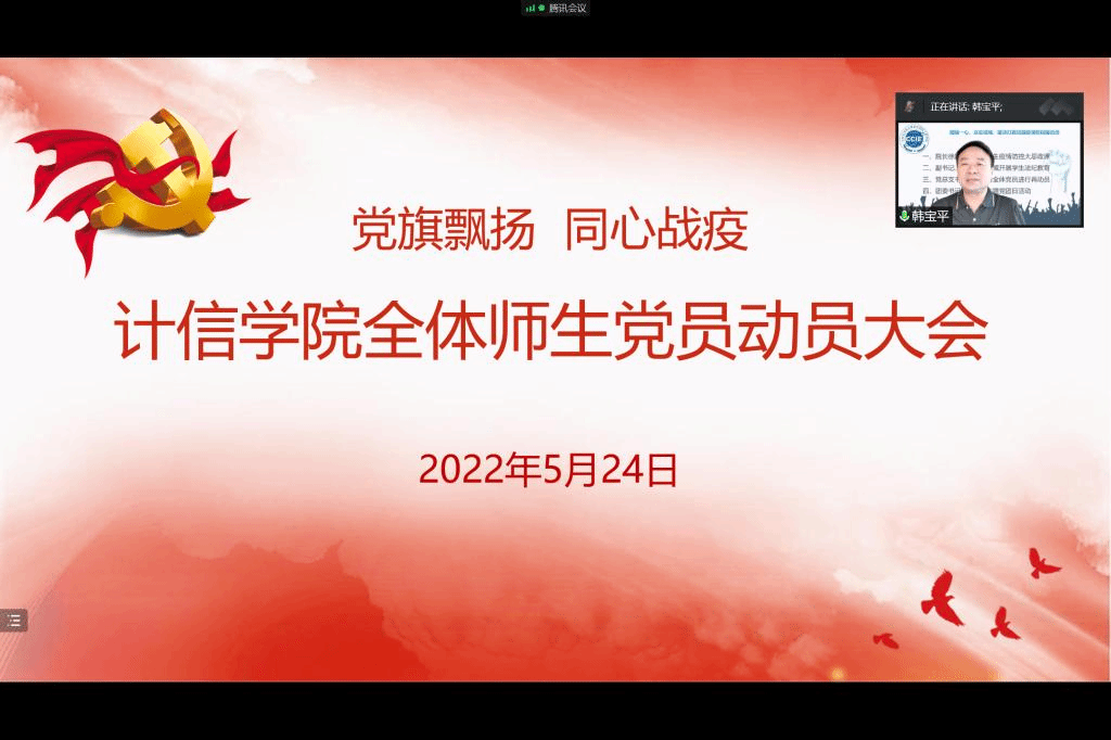 5月24日中午,计信学院院长徐践为全体师生讲授疫情防控“大思政课”。学院全体师生参会,会议由副书记、副院长刘京威主持。