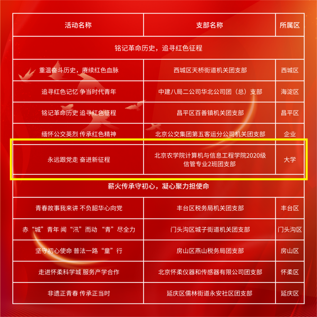 近日,在北京共青团开展的2023年“十佳主题团日活动”优秀案例征集活动中,我院2020级信管专业2班团支部开展的“永远跟党走 奋进新征程”主题团日活动获评月度十佳主题团日活动。