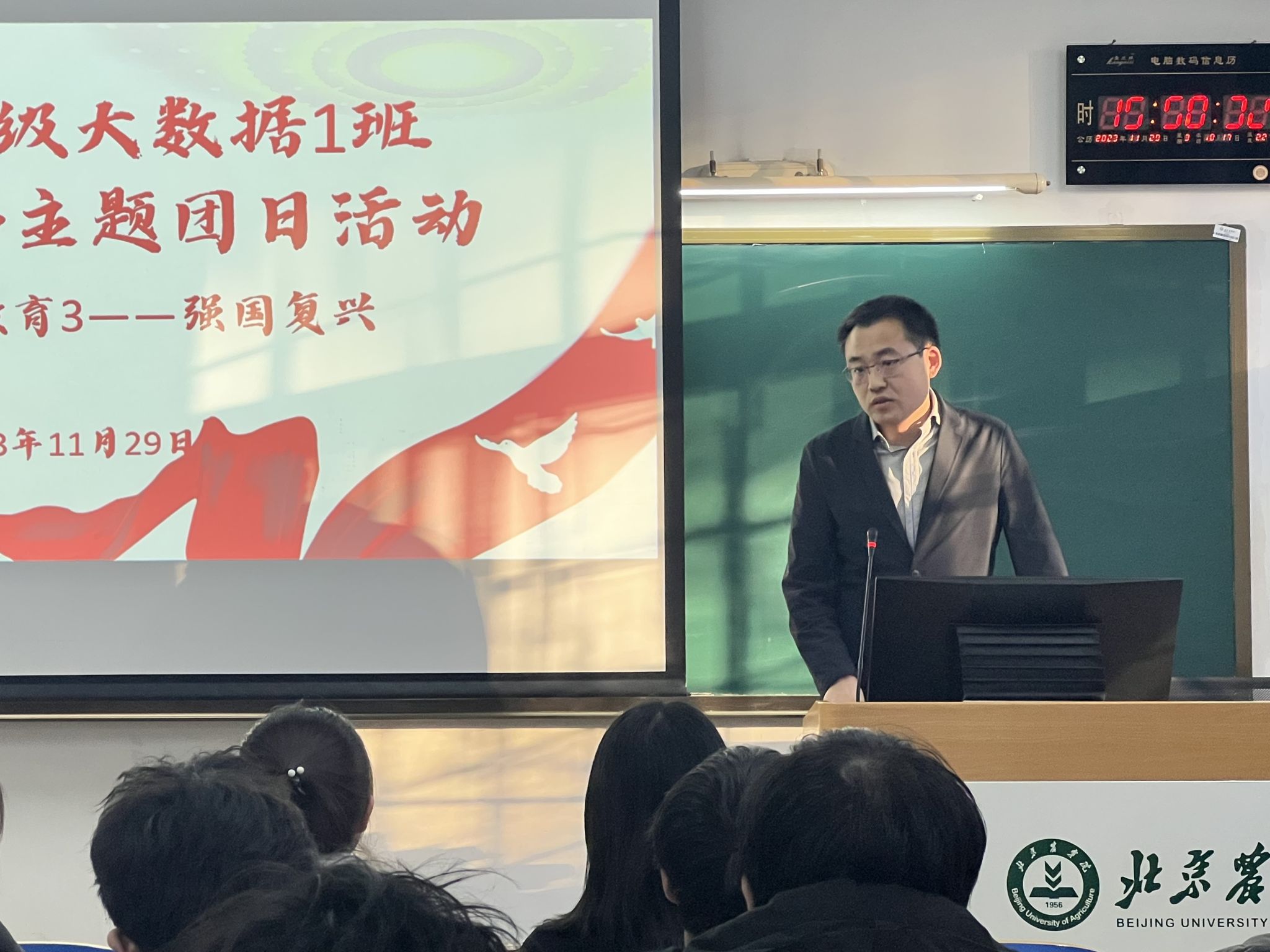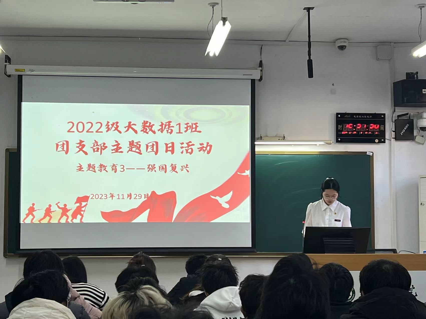 陈勇充分肯定了2022级大数据1班团支部在团日活动开展方面的规范性和学生参与的积极性。他说,青年的理想信念是否坚定,决定着一个国家和民族的前途命运。所以,在团员和青年群体中开展主题教育十分必要。他强调,强国建设、民族复兴离不开青年一代的努力,作为青年,要深入学习贯彻习近平新时代中国特色社会主义思想,把握好这一重要思想的世界观、方法论,从内心深处厚植对党的信赖、对中国特色社会主义的信心、对马克思主义的信仰,做到坚定不移听党话、跟党走。最后,他向全体团员青年提出几点希望:一是要爱国,爱国主义是中华民族精神的核心,希望团员青年积极将小我融入大我,厚植爱国主义精神;二是要爱校,积极践行学校第四次党代会精神,与学校发展同向同行,积极发挥作用实现自身价值;三是要爱家,不仅要爱家里的亲人、尊敬长辈,而且在学校里也要爱班级、爱宿舍这个小家,与同学和睦相处;四是要爱己,要在学习、生活中 养成良好的习惯,要在大学阶段完成自己的知识储备、能力储备,迈入社会后才能绽放绚丽多彩的青春人生。
