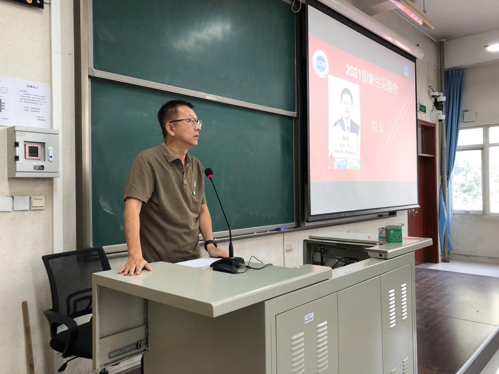 学院院长徐践教授语重心长的与新生们进行了交流,并对新开始的大学生活提出了要求。他要求每一名学生从今天起要学会放下:一是放下对家人的思念,把计信学院当做自己的家;二是放下浮躁不安的心情,踏踏实实的开展求学之路;三是放下手机,不要把大好的青春年华都花费在手机上。他希望每一名学生毕业时都能带走工作所需的知识技能、带走做人做事的能力和爱情亲情友情。最后院长承诺一定会带领要求学院每一名教师全心全意的做好本职工作,带领学院科研团队一丝不苟的把大家培养成社会所需的合格人才。