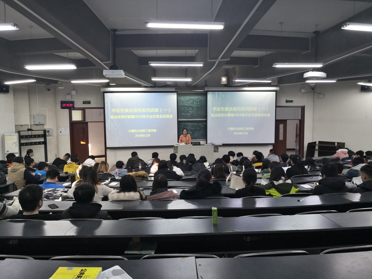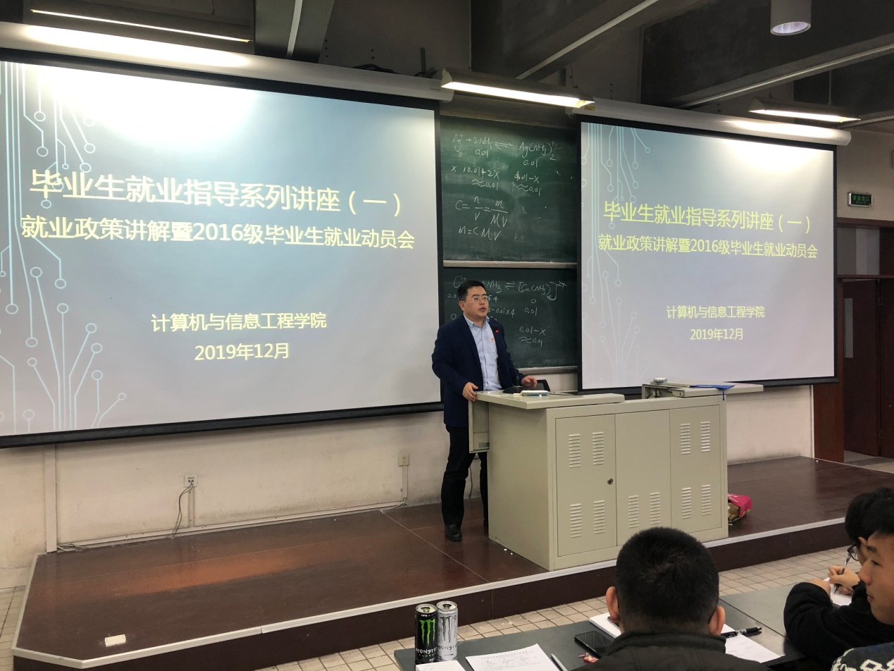 为切实提升毕业生就业质量,引导毕业生树立正确的就业观,保持良好的就业心态,充分做好就业准备,12月3日下午,计算机与信息工程学院在B103召开了2016级毕业生就业动员会。学生处就业指导中心郭贵川、学院党总支副书记、副院长刘京威,学院团委书记宁宁,全体2016级全体毕业生参加动员会。