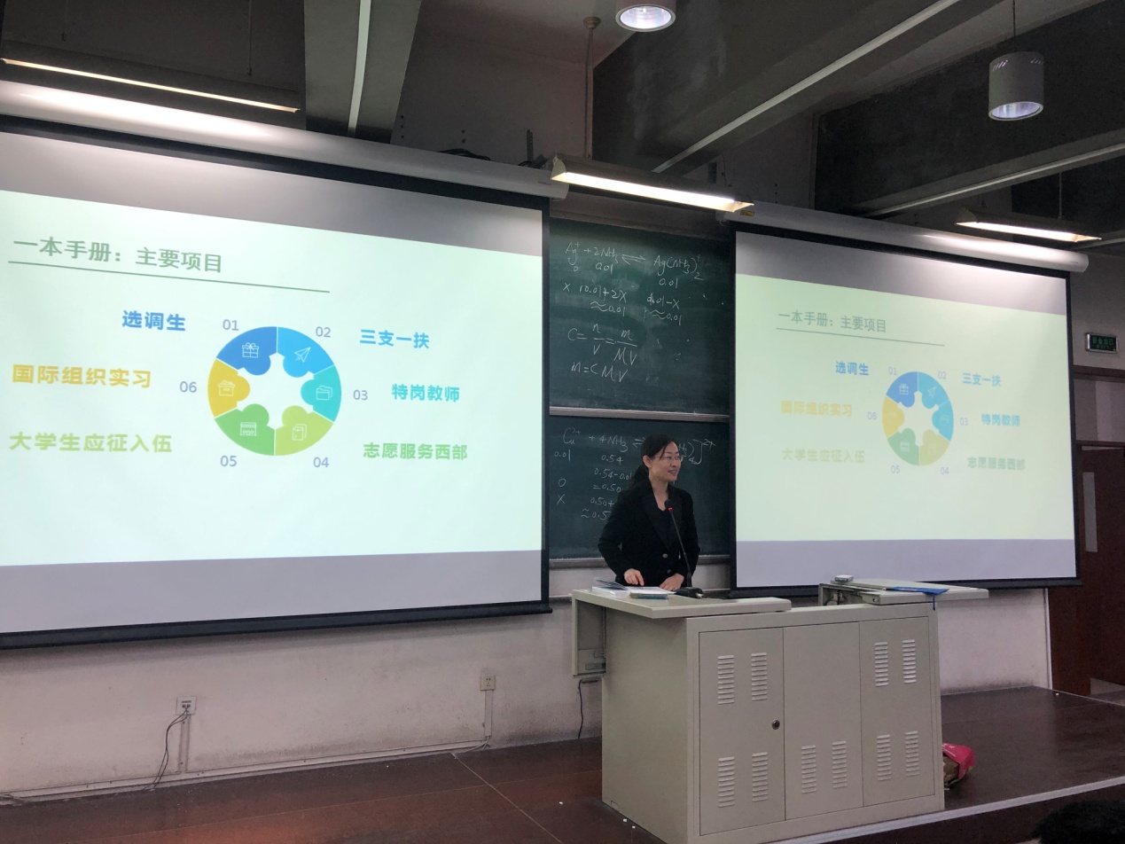 宁宁老师从简历的制作、求职的准备等方面为毕业生们进行详细讲解,并将往届毕业生的优秀简历和求职经历与同学们进行了分享。同时,她还强调了就业手续办理的几个关键时间节点,对就业流程中的关键词进行了详细的说明,鼓励毕业生树立科学的就业观,以积极的心态面对就业。会上,宁老师还现场解答了毕业生们在求职、毕业手续的办理等方面提出的问题。