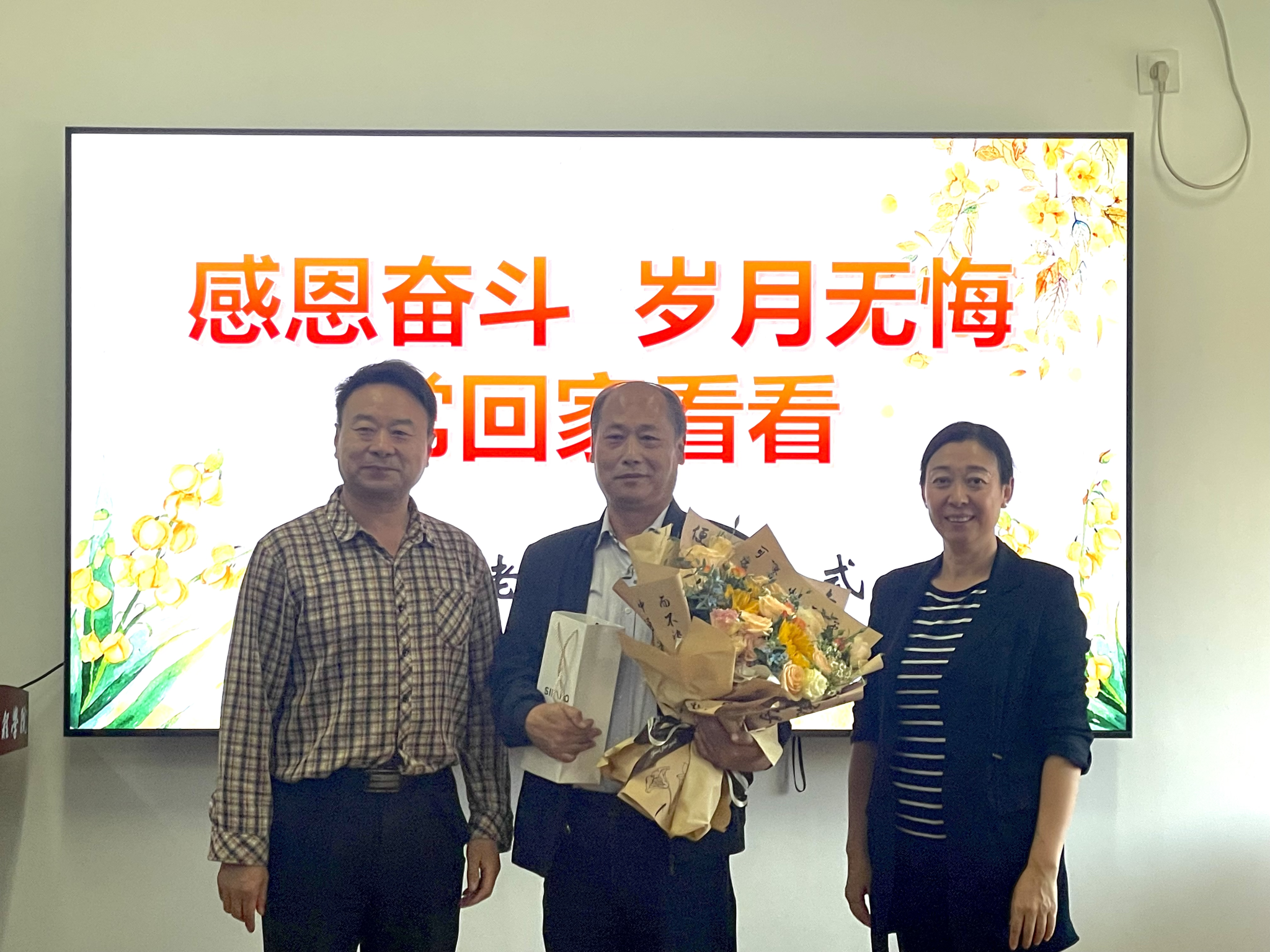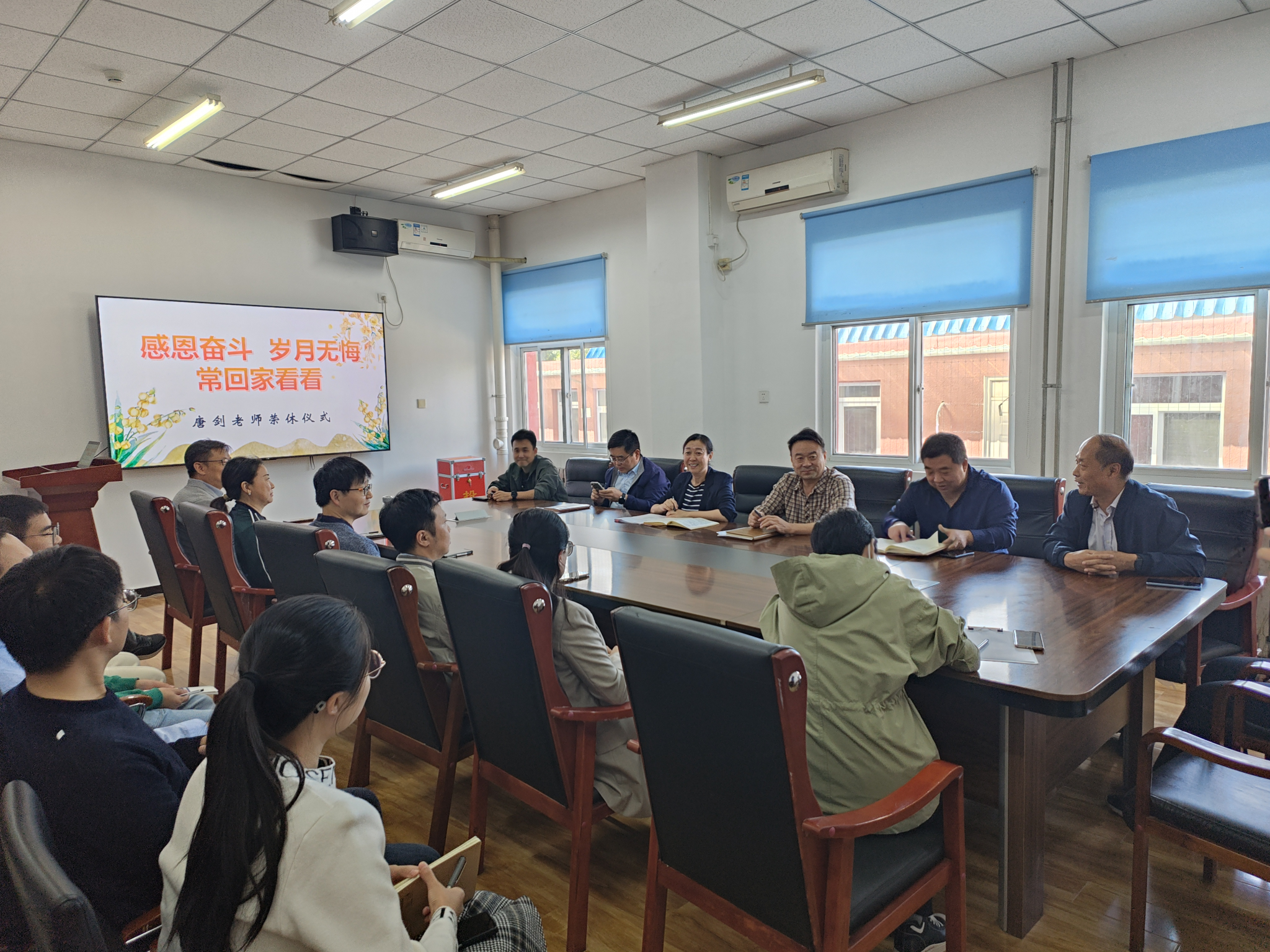 荣休仪式上,学院党总支书记张晓凤,学院党总支副书记、院长韩宝平为唐剑同志送上了鲜花和带有学院标志的纪念水杯。并对唐剑同志22年来的辛勤付出和积极贡献表达了感谢和敬意。