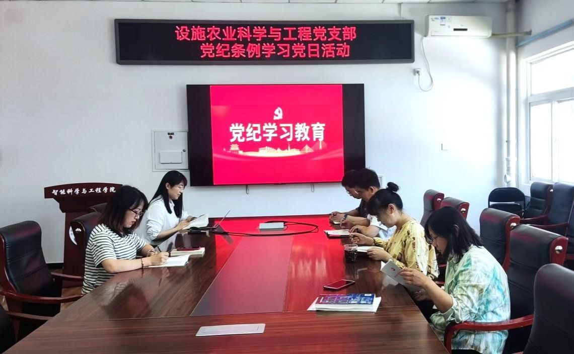 2024年5月17日,智能学院设施农业科学与工程系党支部,开展以“学习党纪条例,筑牢师德底线”为主题的党纪学习教育主题党日活动,按照校、院两级的目标要求,紧扣学习重点,坚持教育引导全系党员教师做到学纪、知纪、明纪、守纪,推动党纪学习教育深入开展、见行见效。会议由支部书记杨丽同志主持,支部全体教师党员参加。