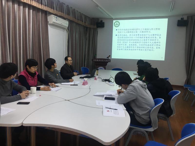 何忠伟处长受邀为研究生党员作了题为《贯彻十九大精神,推进全面从严治党》的报告。报告结束后,何忠伟处长与研究生党员在如何加强理论学习、研究生培养等方面进行了简短交流。